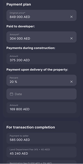 Currently, UPPEROFFER supports real estate deal calculations for Dubai, UAE. We’re actively working on expanding to all Emirates, as
